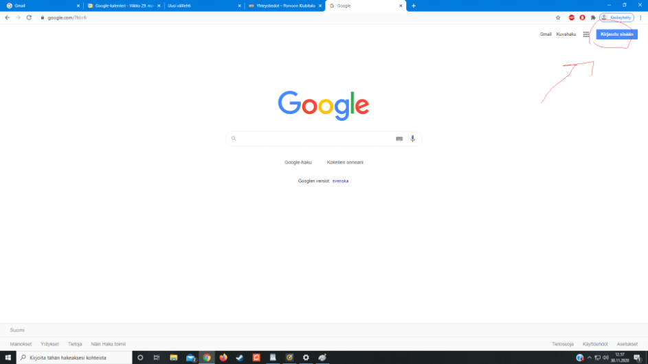 1. Kirjaudu sisään chrome selaimella gmail- tiliisi (oikea yläkulma)