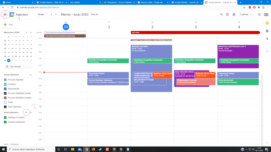 Ohjeet klubitalon google kalenterin tilaamista varten.